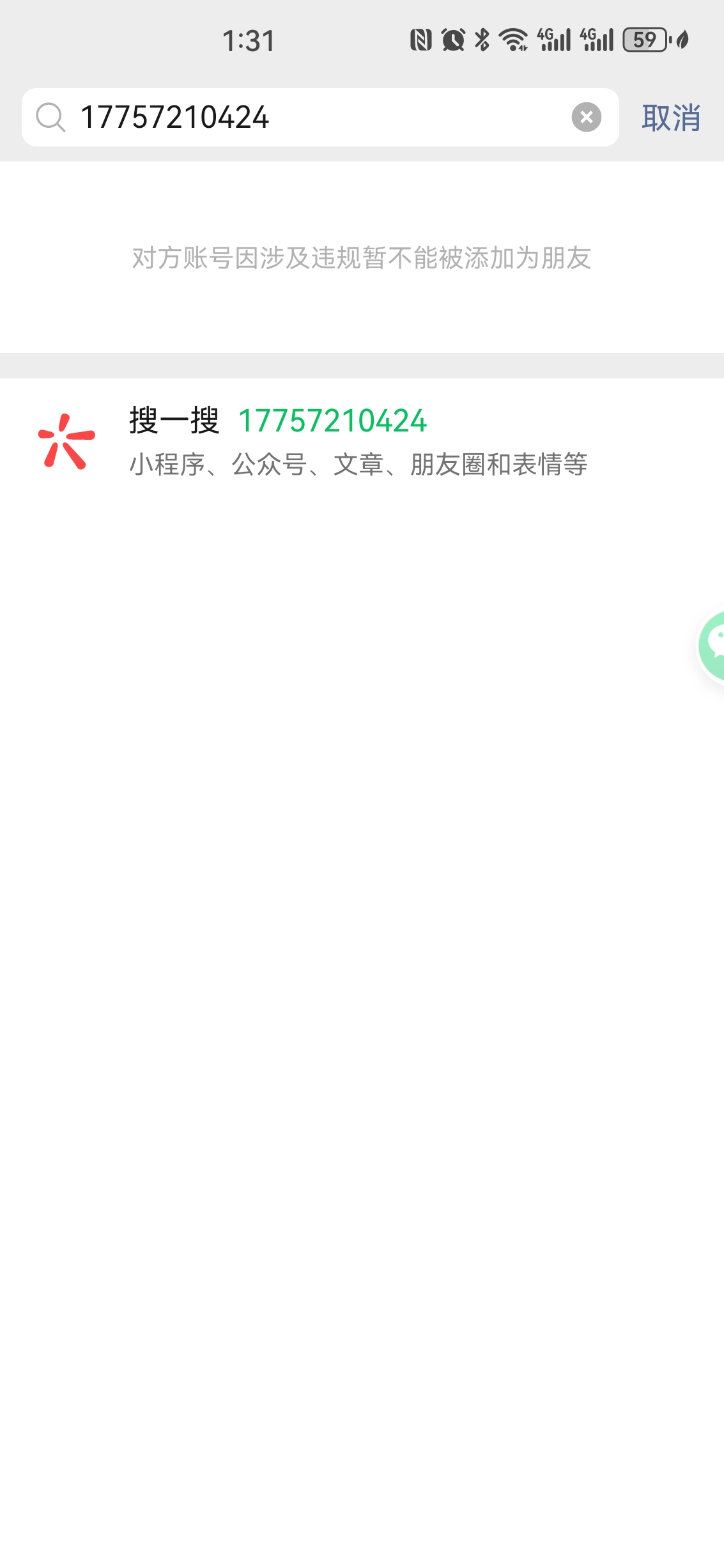 账号搜索异常 已退回