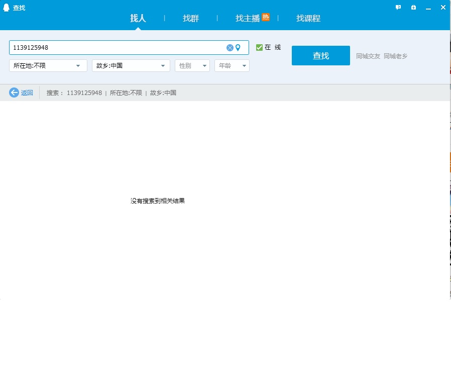 没有搜索到相关用户 已退回