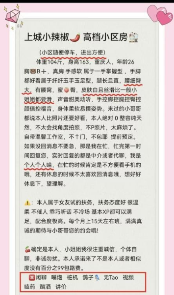 朋友介绍的这个熟女少妇,年纪大一点但是性价比很高,活也很好,还有一个姐妹住一起的可以双飞,胸大活好, ...