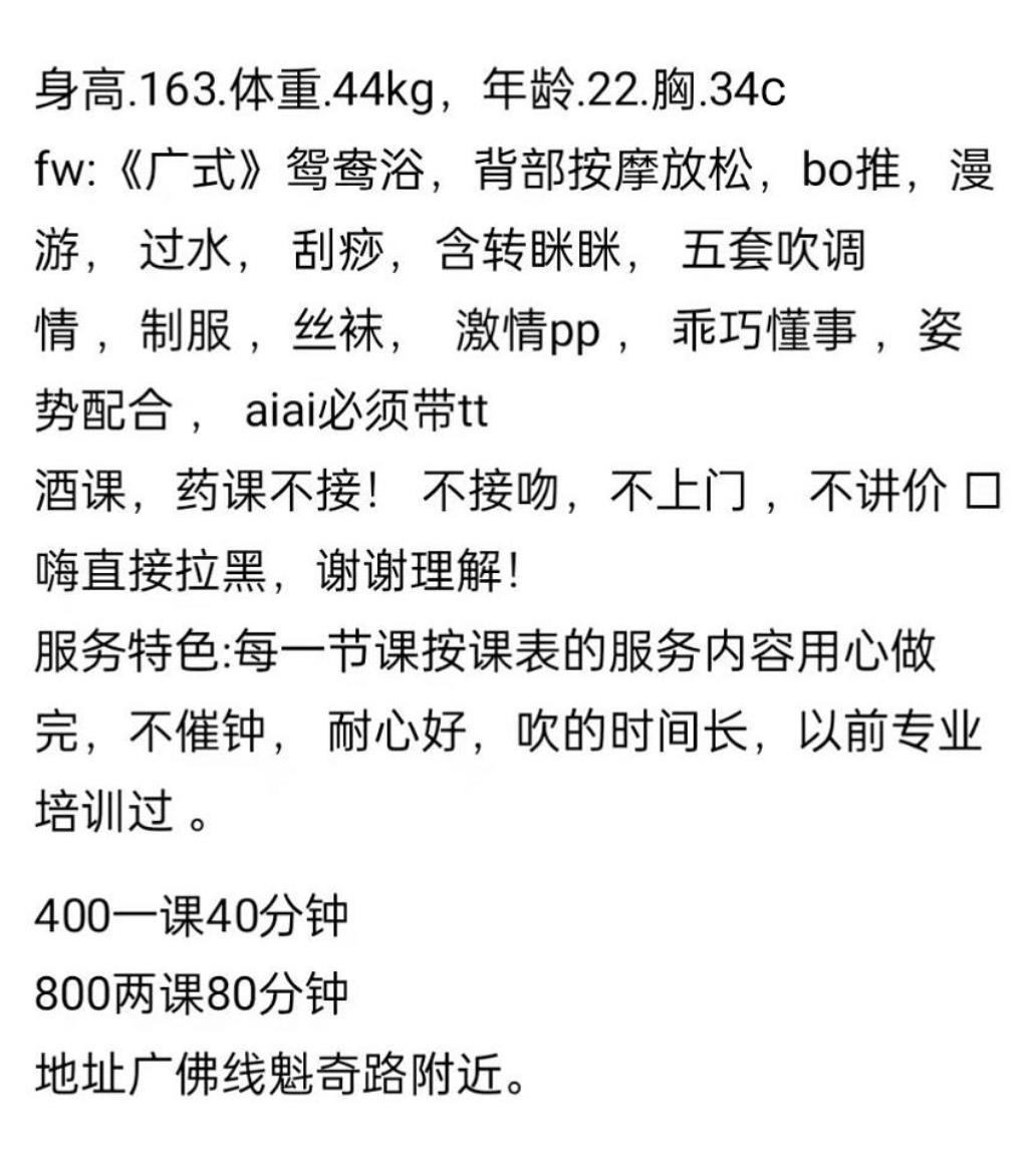 妹子佛山肇庆两边跑,最早是在肇庆做,最近又回佛山了,佛山价位比广州的低一些,在广州的得抓紧了,地方还 ...